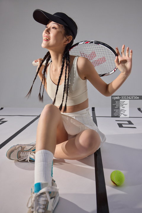 图片标题:     拿着网球拍的一位青年女人