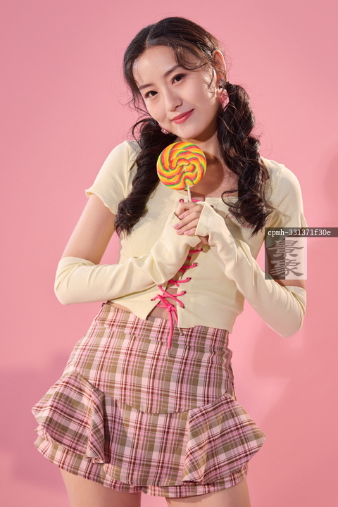 图片标题: 拿着棒棒糖一位年轻快乐女孩