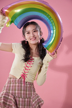 图片标题: 粉色背景下穿背带裤的快乐女孩