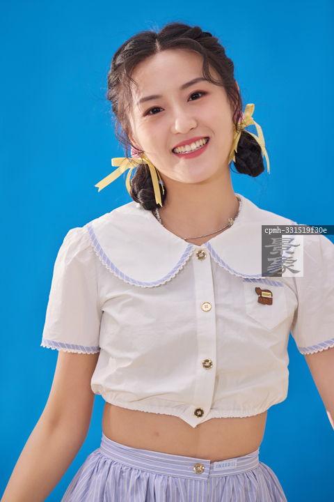 图片标题:     蓝色背景下的快乐女人