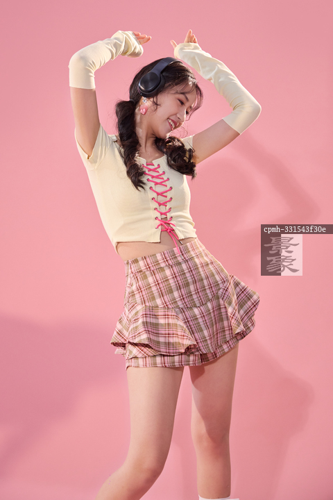 图片标题: 一位年轻快乐女孩听音乐跳舞