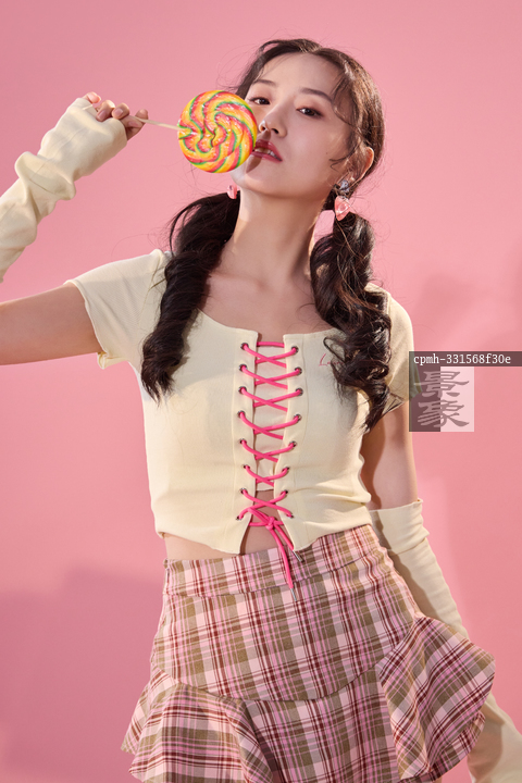 图片标题: 拿着棒棒糖一位年轻快乐女孩