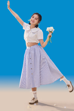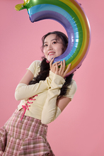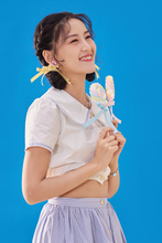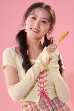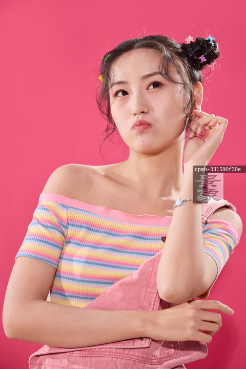 图片标题: 粉色背景下穿背带裤的快乐女孩