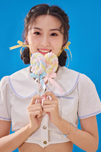 图片标题: 拿着棒棒糖一位年轻快乐女孩