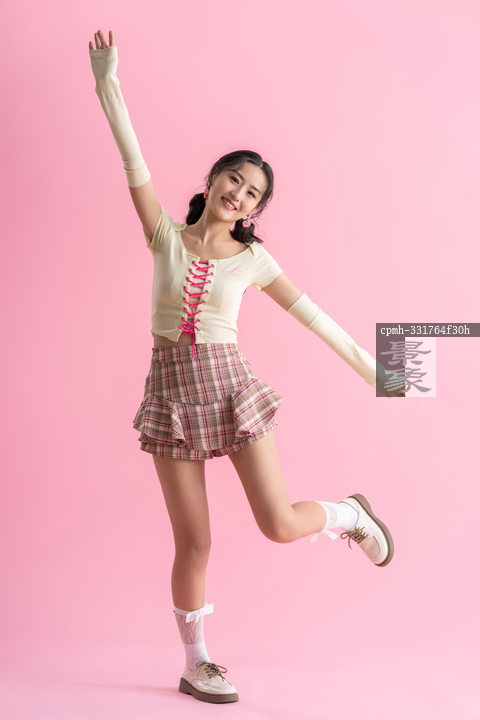 图片标题:     粉色背景下的一位年轻快乐女孩