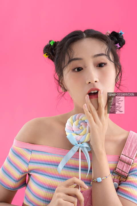 图片标题:     粉色背景下的青年女人