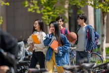 图片标题: 校园里下课后的的大学生