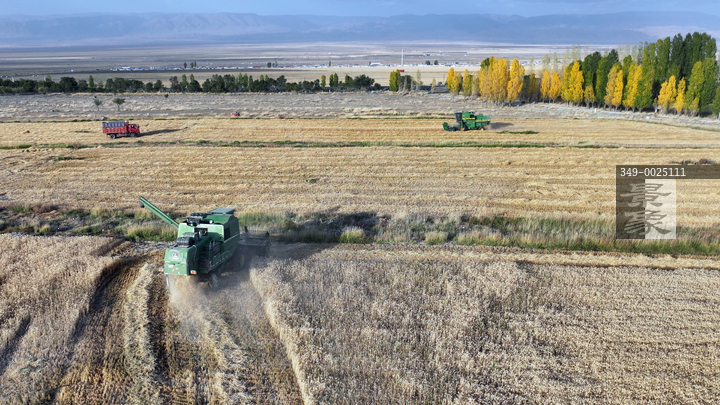 图片标题: 新疆巴里坤:丰收节忙收麦