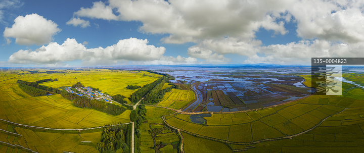 图片标题:     航拍松花江湿地和大地稻田