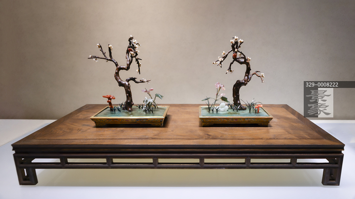 图片标题: 故宫珍宝馆-金嵌珐琅长方盆穿珠梅花盆景-清代