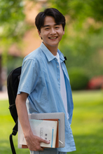 图片标题: 校园里看书的大学生情侣