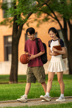 图片标题: 校园里一起看书的大学生情侣