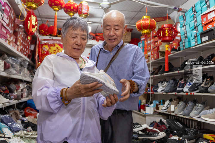 图片标题: 商店内老年夫妇挑选鞋