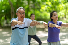 图片标题: 公园内打乒乓球的老年夫妇