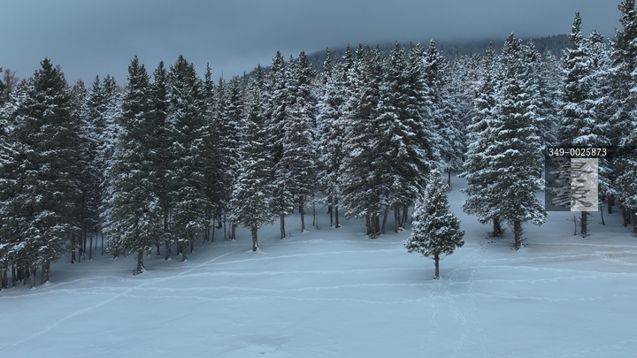 图片标题: 新疆哈密:雪后天山森林金染银