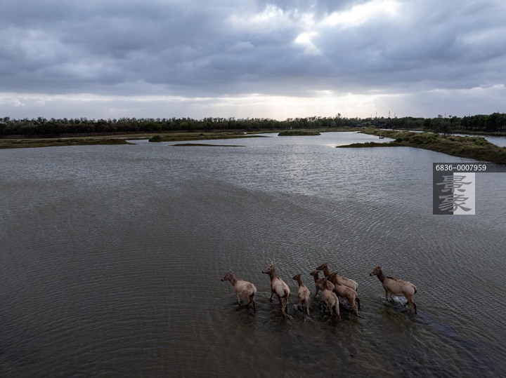 图片标题: 江苏盐城:麋鹿栖息地的秋日生态画卷