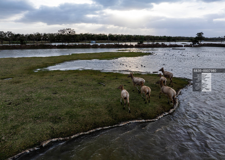 图片标题: 江苏盐城:麋鹿栖息地的秋日生态画卷