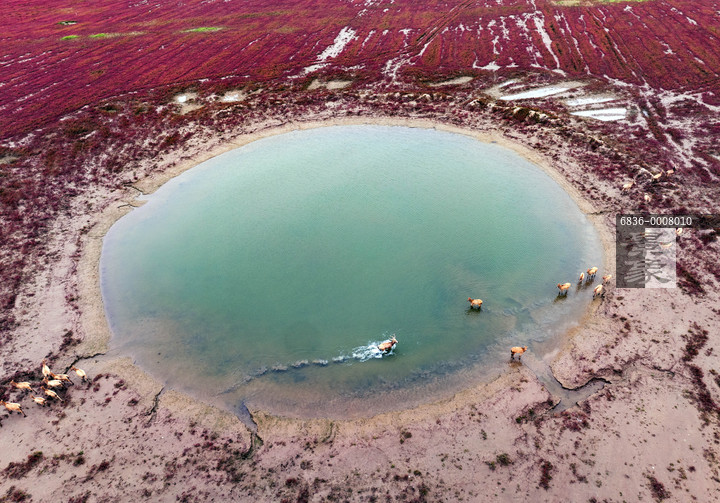 图片标题: 江苏盐城:湿地“红地毯”上麋鹿欢