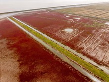 图片标题: 江苏盐城:湿地“红地毯”上麋鹿欢