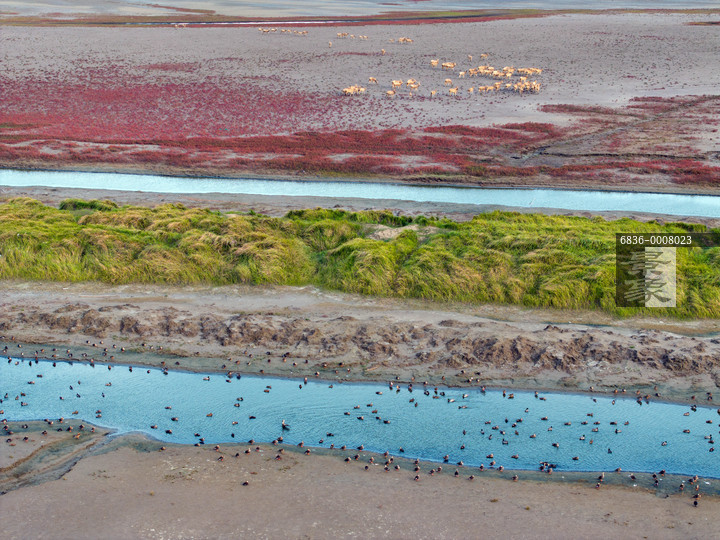 图片标题:     江苏盐城:湿地“红地毯”上麋鹿欢