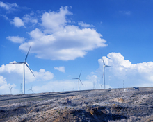 图片标题: 新疆北端阿勒泰地区布尔津县五彩滩风电地场