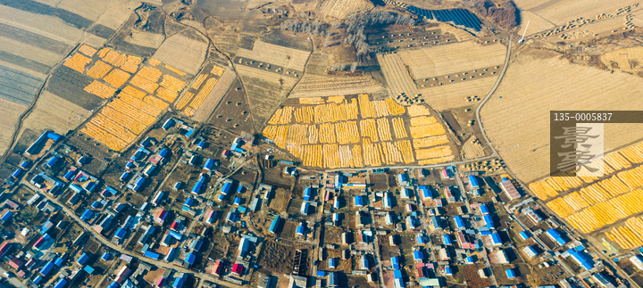 图片标题:     东北乡村铺满玉米的大地村庄