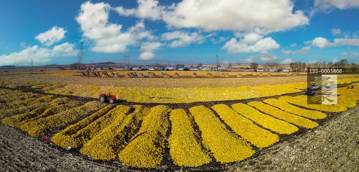 图片标题: 东北乡村铺满玉米的大地村庄
