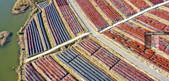 图片标题: 山东日照:初冬蓝莓染红美如巨幅画卷
