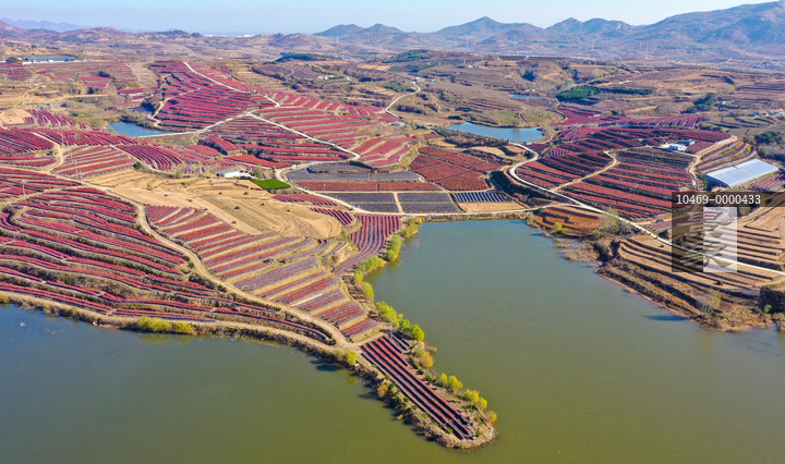 图片标题: 山东日照:初冬蓝莓染红美如巨幅画卷
