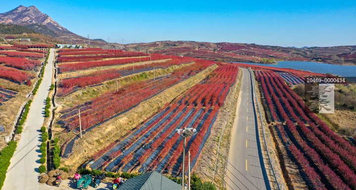 图片标题: 山东日照:初冬蓝莓染红美如巨幅画卷