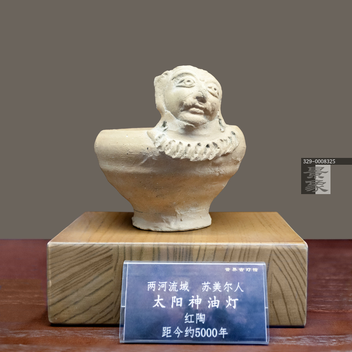 图片标题: 世界古灯馆-红陶太阳神油灯-两河流域-苏美尔人-距今约5000年