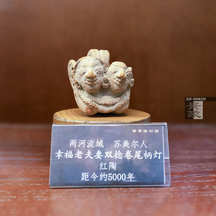 图片标题: 世界古灯馆-红陶幸福老夫妻捻卷尾柄灯-两河流域-苏美尔人-距今约5000年