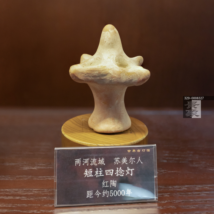 图片标题: 世界古灯馆-红陶短柱四捻灯-两河流域-苏美尔人-距今约5000年
