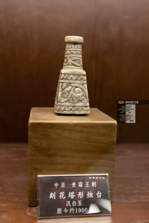 图片标题: 世界古灯馆-汉白玉刻花塔形烛台-中亚-贵霜王朝-距今约1900年
