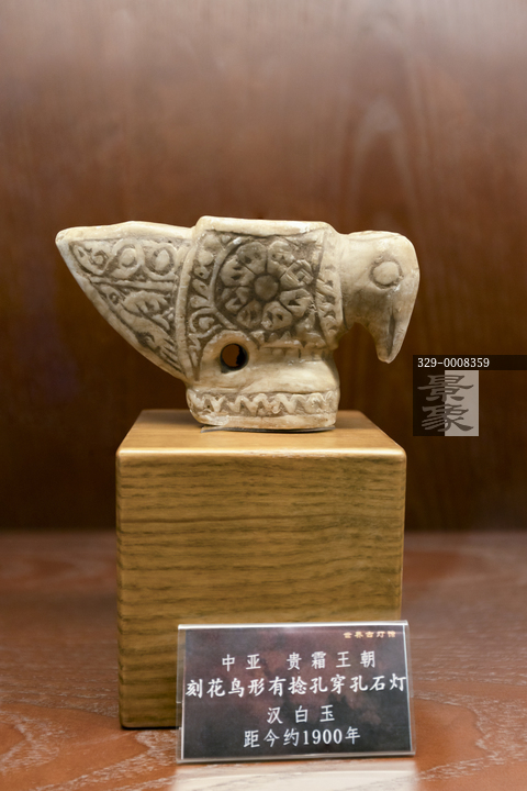 图片标题: 世界古灯馆-汉白玉-刻花鸟形有捻孔穿孔石灯-中亚-贵霜王朝-距今约1900年