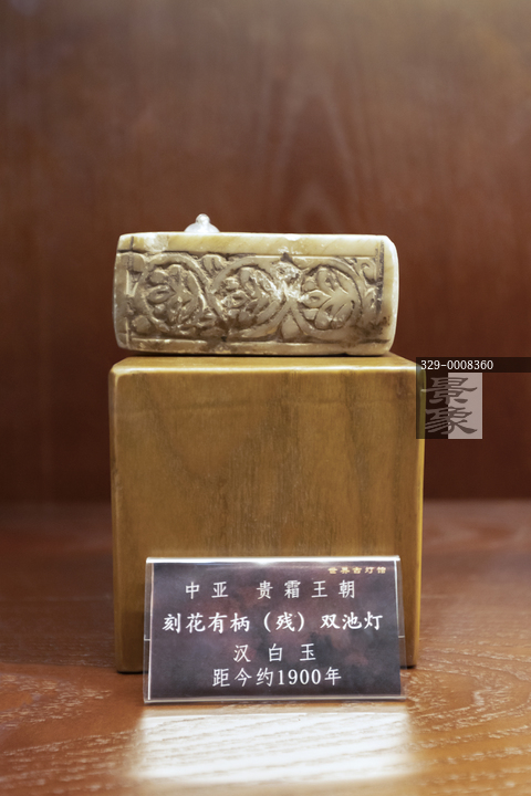 图片标题:     世界古灯馆-汉白玉刻花有柄(残)双池灯-中亚-贵C王朝-距今约1900年
