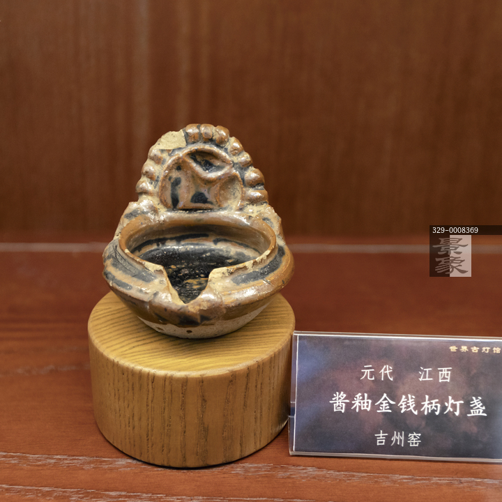 图片标题: 世界古灯馆-吉州窑-酱釉金钱柄灯盏-元代-江西