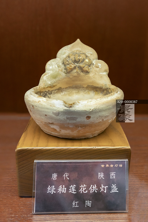 图片标题: 世界古灯馆-红陶绿釉莲花供灯盏-唐代-陕西