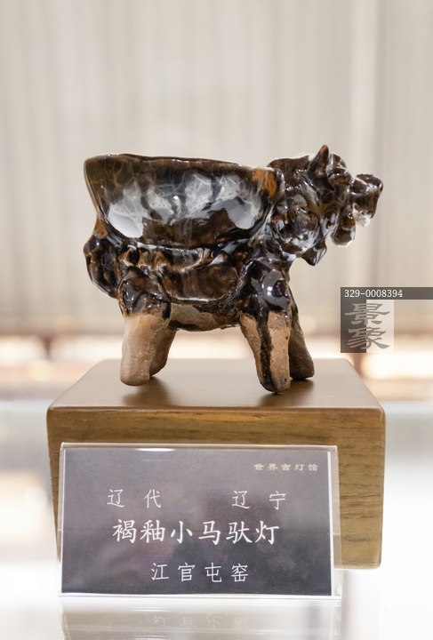 图片标题: 世界古灯馆-江官屯窑褐釉小马驮灯-辽代-辽宁