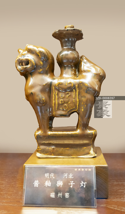 图片标题: 世界古灯馆-磁州窑酱釉狮子灯-明代-河北
