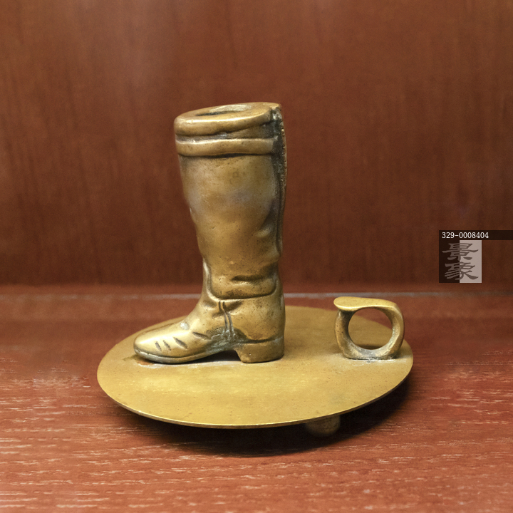 图片标题: 世界古灯馆-铜圆台环柄靴子烛台-欧洲-距今约100年
