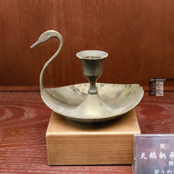 图片标题: 世界古灯馆-铜天鹅柄承盘烛台-欧洲-距今约100年