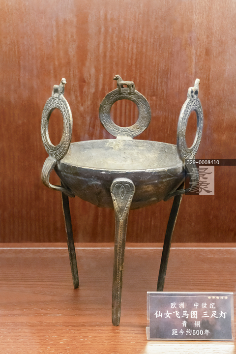 图片标题:     世界古灯馆-青铜仙女马图三足灯-欧洲中世纪-距今约500年