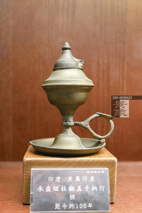 图片标题:     世界古灯馆-铜承盘短柱翻盖手柄灯-印度-距今约100年