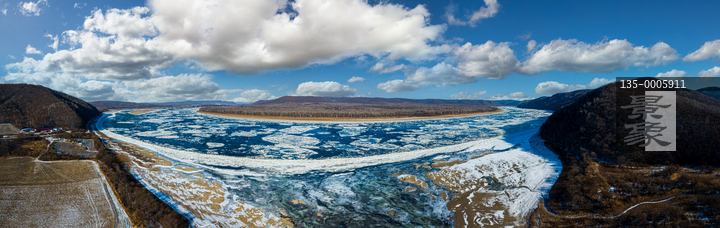 图片标题: 航拍嘉荫马连黑龙江流冰风光