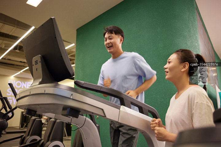 图片标题: 酒店健身房里的青年伴侣