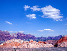 图片标题: 新疆阿克苏到喀什S13三莎高速公路边的五彩天山山脉
