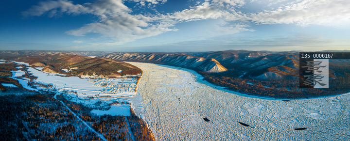 图片标题: 航拍黑龙江金满峡封江风光