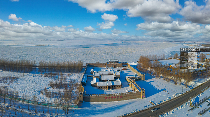 图片标题: 航拍佳木斯松花江沿岸封江风光