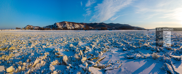图片标题: 航拍佳木斯松花江沿岸封江风光